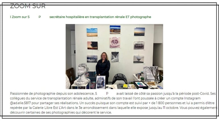 Retour sur mon vernissage. Grâce aux cadres et médecins de mon service, le service communication a écrit un article sur ma passion : la photographie et mon exposition